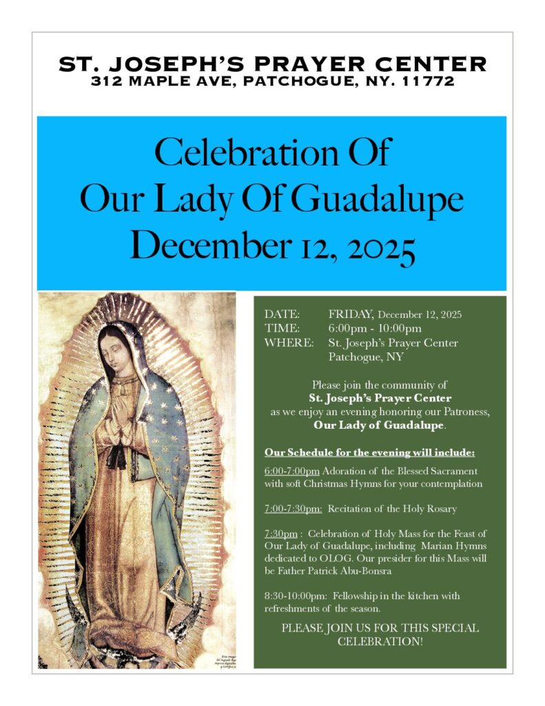 The mission of the St. Joseph Prayer Center is to carry people towards our Lord Jesus, helping to remove the obstacles that would impede a true conversion, using diverse programs, courses and personal spiritual direction and inner healing in accordance with the Magesterium of the Church and in conjunction with the office of New Evangelization of the diocese of Rockville Centre.”